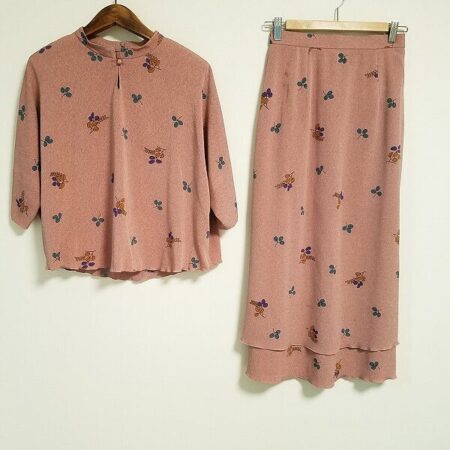 詩仙堂のセットアップを買取しました。買取方法は店頭預り買取。柔らかいピンクで個性を演出できます。柄も小さく控えめなのでほどよいチャーミングさを出していただけるかと思います。ラインもしなやかです。