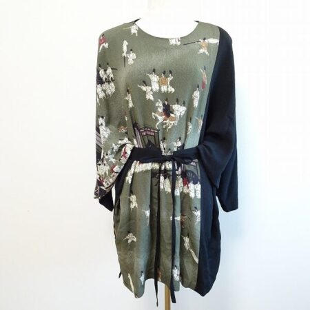 詩仙堂のチュニックを買取しました。出張買取です。程よい綺麗な緑にストーリー性がある和柄がよくマッチします。適度な長さなのでいい具合のおしゃれ感を出していただけます。