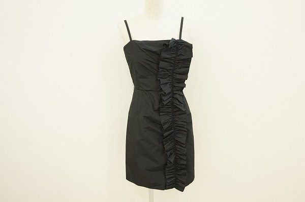 パリジェンヌたちが愛してやまないリトルブラックドレスをベースにしつつ、大人っぽくシックな雰囲気とガーリィなフリル使いが印象的なこんなオールインワンは、気負わないカジュアルコーディネートにミスマッチ感覚で使うもよし。オーガンディのショールとあわせておもいっきりエレガントに決めるもよし。