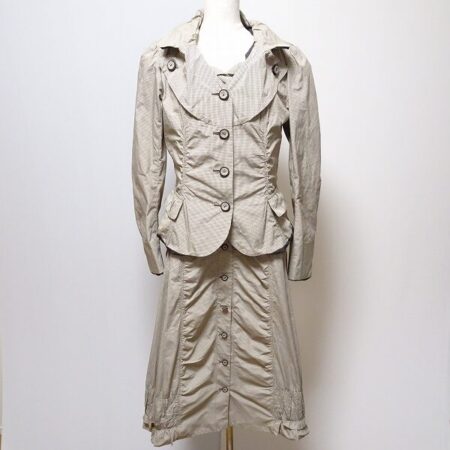 出張買取にて買取したヒロココシノのセットアップです。サイズは40。女性の体に寄り添うような繊細なギャザーが魅力的。スタイルをよく見せたい時にもおすすめです。