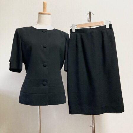 出張買取にてユキトリイのセットアップを買取しました。サイズは9号です。シンプルながらも凹凸が効いていてキレイめな印象にしてくれます。半袖なのでスッキリ着られるのもいいですね。