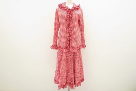ゴージャスなフリル使いがピンクハウスらしいセットアップ。出張買取ご利用のお客様より買取しました。チェックがカジュアルさも加えてくれます。首元を中心にボリュームあるフリルが大人のおしゃれを盛り上げてくれる1着。シンプルなアイテムの差し色として使用するのもおすすめです。