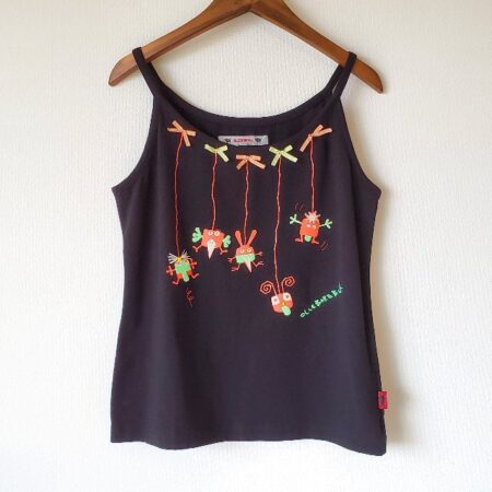 出張買取にてアルベロベロのキャミソールを買取しました。サイズはMです。黒にミニマムなキャラクターが可愛く飾られたお洋服。解放感を出しつつ楽しんで着ていただけます。