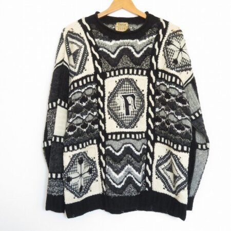 モノトーン調のカッコイイニットを出張買取ご利用のお客様より買取しました。ブランドはフィッチェです。白と黒のシンプルな色使いではありますが、豪華な雰囲気をしっかり演出してくれています。タイトジーンズなどとも相性抜群。ニットだけでも十分な存在感があるのが嬉しいポイントですね。