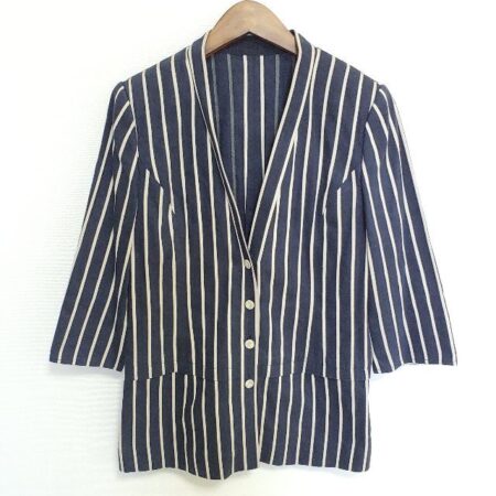 出張買取にてジュンアシダのジャケットを買取しました。サイズは11号です。メリハリが出るストライプですが、七分袖なので涼しく強すぎず着ていただけます。下に長めのトップスを合わせても締まりますね。