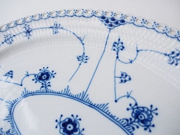 唐草模様と緻密なレース技術が格調を感じさせてくれるブルーフルーテッドは世界中で愛されています。このシリーズには3種類(プレイン・ハーフレース・フルレース)ありますが、今回ご紹介したのは最も高級ラインであるフルレースです。