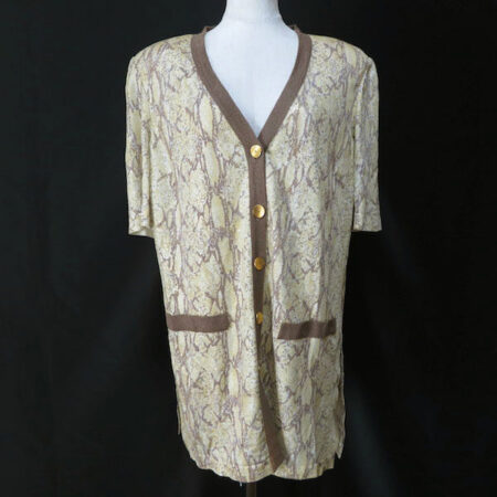 出張買取ご利用のお客様よりスティゾーリのカーディガンを買取しました。軽く羽織れるのが嬉しいカーディガン。パイソン柄のとげとげしさはなく清潔感ある感じを出していただけるカーディガンです。夏から秋口にも使っていただける長期利用も期待できるアイテム。きらりと光るボタンも特徴的です。