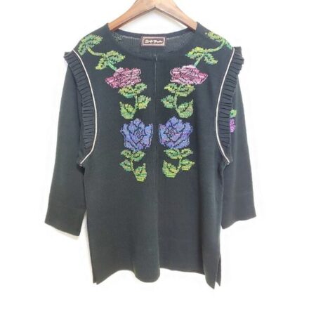 斉藤都世子のセーターを買取しました。ご利用方法は出張買取です。七分袖と黒できりっと感じもありますが花柄の可愛さが適度な上品さを与えて柔らかくしてくれます。パンツにも合わせてもいいですね。