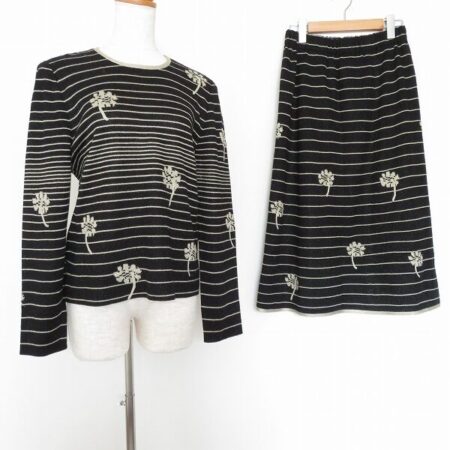 斉藤都世子のセットアップを出張買取ご利用のお客様より買取しました。黒の落ち着いた雰囲気に可愛らしいお花がバランスよくほどこされた言うことなしのアイテム。カジュアルを楽しみつつ、女性のしっとり感も味わえます。
