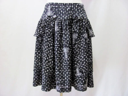 落ち着いた黒の中にもバラを加えて可愛らしさを表現してくれるインゲボルグらしさを感じるスカート。出張買取にて買取しました。フリルもバランスよくあるので着るだけで女性のたおやかさを感じられます。トップスに明るめのお色を持ってきても締まるありがたいアイテムですね。様々なシーンに引っ張りだこな1枚かもしれません。