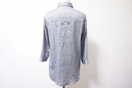 シンプルなデザインのシャツのバックスタイルに一ひねりくわえた、銀河鉄道999に出てくる哲郎を可愛くイラスト化したデザインです。