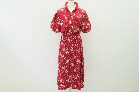 ピンクハウスのエンジ色が素敵なワンピースを出張買取ご利用のお客様より買取しました。デザイナー金子功氏によるフェミニンで可憐なアイテムが女性のハートをつかむブランドです。鮮やかなエンジ色がなんとも華やか。バルーンスリーブで柔らかく少女のような気持ちを取り戻すことができます。ジャケットを合わせても可愛いですよね。