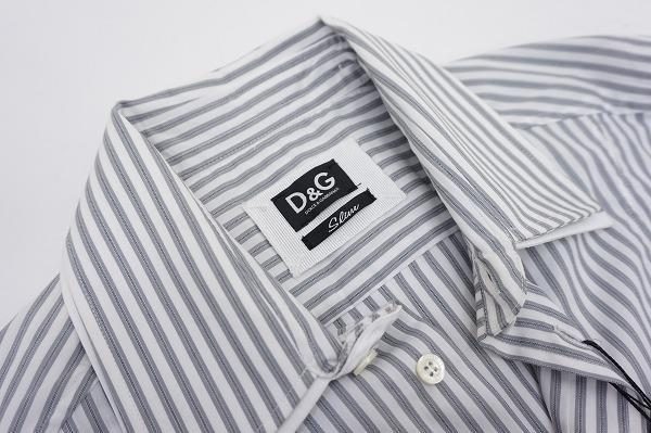 今回、こちらでご紹介させていただくのは、D&Gのメンズ向けのシャツになります。縦ストライプでブルー系のお色味なので、見た目がとても爽やかや1枚です。