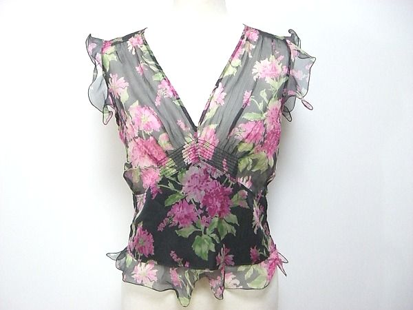 320228 MaxMara マックスマーラ 黒×花柄 シルク トップス