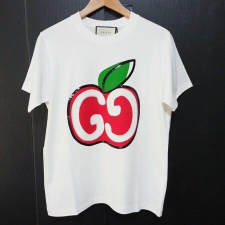 グッチのTシャツを買取させていただきました。爽やかな白に可愛らしくもパンチのあるアップルモチーフがレアです。ジーンズからプリーツスカートまで合わせる楽しみも広がります。
