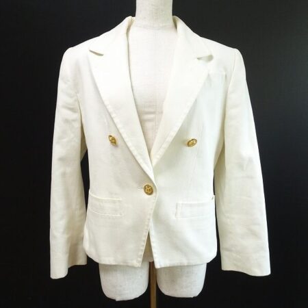 出張買取にてセリーヌのジャケットを買取しました。サイズは40です。白のさわやかさに金ボタンの輝かしさもたっぷり詰まった1点です。着るだけで気持の部分も冷静に落ち着きを取り戻せそう。