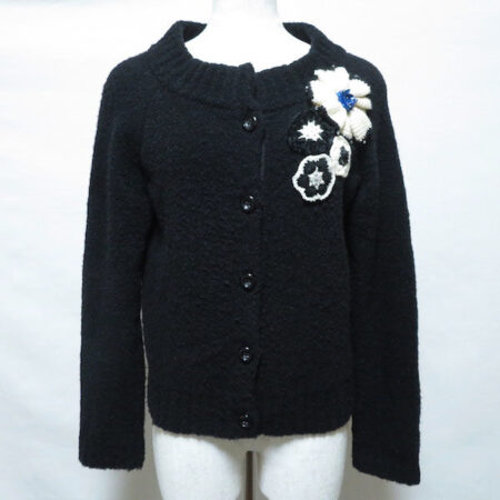 黒と可愛らしいビジューがマッチしたユキトリイのニット。出張買取ご利用のお客様より買取しました。サイズは38号です。ビーズとスパンコールが効いた花モチーフが落ち着いた黒にバランスよく映えた1枚。全体を引き締めつつも華やかさを出してくれるありがたいアイテムです。
