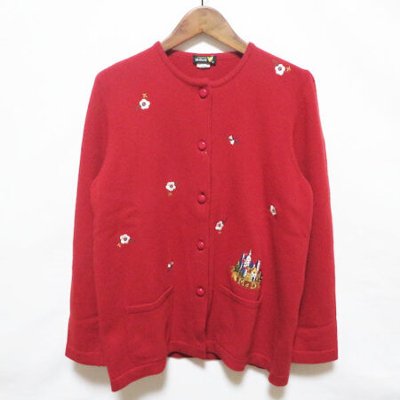 目立つ赤についつい惹かれてしまうカーディガン。マックデイビッドのアイテムです。サイズはレディースのLサイズ。タイトなトップスの上から軽く羽織るのも素敵かと思います。