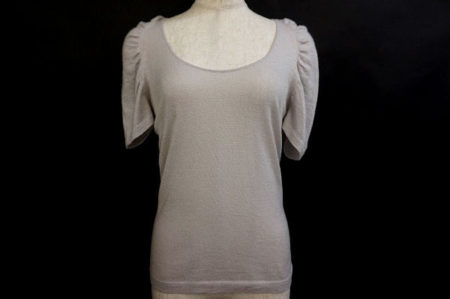 アニオナの半袖セーター・40を出張買取にて買取しました。お袖に女性らしさを存分に感じられる嬉しい1枚です。首回りもUネックであることにより、優しい印象にしてくれます。アクセサリーもしっかりとアピールできそうなデザインですね。