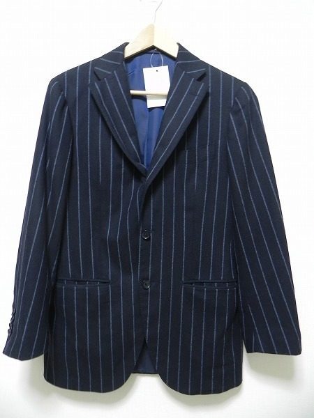 今回、当店でご紹介させていただくこちらのジャケットは、ウール製・ストライプ柄・三つボタンとクラシックを意識した仕様となっています。