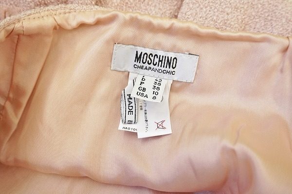 今回ご紹介させていただくのは、モスキーノのピンクがキュートなスカートになります。