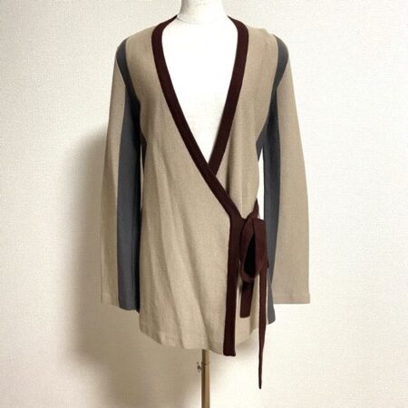 イヴサンローランのカーディガンを買取しました。ご利用方法は宅配買取です。ベージュと茶色の組み合わせがどこかレトロで味のある印象にしてくれます。