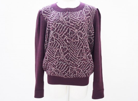 今回買取させて頂きましたカーディガンもベーシックな形ですが上品なえんじ色と肩のタックが二の腕周りをカバーしてくれます。ハイウエストのパンツやスカートを合わせるとよりスタイル良く着こなせます。