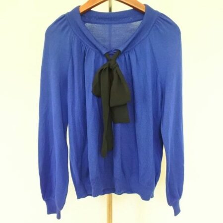 キャラオクルスのセーターを出張買取ご利用のお客様より買取しました。サイズは11号です。鮮やかな青に黒リボンが際立った1点。オフィスレディのような綺麗さも感じられます。