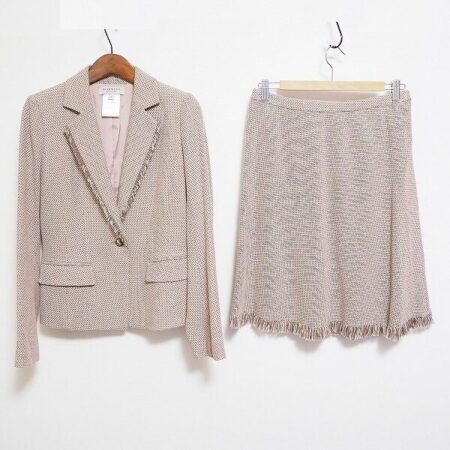 人気ブランドのジバンシィ。出張買取にてスカートスーツを買取しました。40サイズです。茶色×ピンク×白のバランスがいい綺麗な色味が特徴です。フリンジが加わっておしゃれにも花が咲きます。