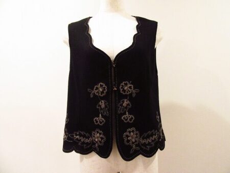 こじんまりしたデザインが素敵なロッサのベスト。短めのシャツやあえてロング丈のチュニックなどに合わせても可愛いかと思います。44サイズです。黒なのでいろいろなカラーのトップスと楽しめるのも魅力の1つですね。