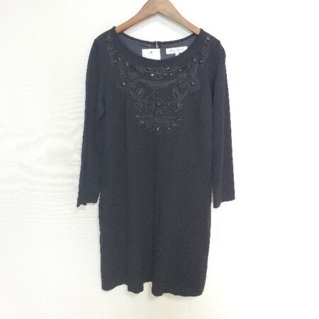 出張買取にてスーパービューティーのワンピースを買取しました。サイズは40です。黒ではありながらも煌びやかなビジューで輝きを出していただけます。首回りが光るというのも魅力的です。