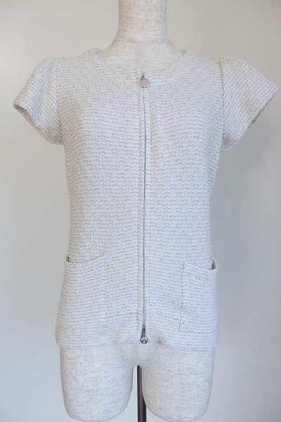 フェミニンで柔らかいイメージの中にもキラリとひかる個性が魅力のルネより、シンプルなピケ柄がさりげなく個性的なベージュのニットパーカーのご紹介です。