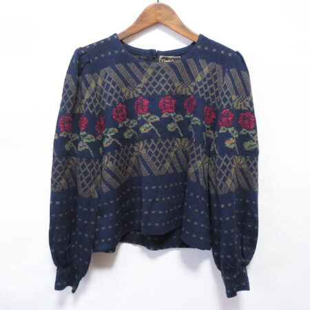 バラ柄が素敵な斉藤都世子のニット。出張買取ご利用のお客様より買取しました。紺色ベースというのもシックな雰囲気を作り上げてくれていて、大人のカジュアルコーデにはピッタリです。