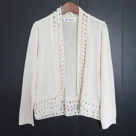 出張買取ご利用のお客様よりバラ色の暮しのカーディガンを買取しました。白の爽やかさと可愛らしさが出ている素晴らしいカーディガン。柄物の豪華さにも溶け込んでくれそうな1枚ですね。
