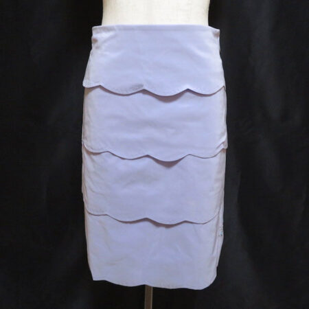 伊太利屋のスカートを出張買取ご利用のお客様より買取しました。女性にとっては嬉しい淡いカラー。程よい存在感も加えてくれるティアードデザインもおすすめポイントです。ハイヒールでもスニーカーでもスッキリ演出してくれるのではないかと思います。