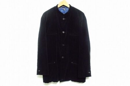 男性のお客様よりパパスのジャケットを出張買取にて買取しました。マオカラーデザインでシュッとした雰囲気に決まる1着。安定感のある黒で場所を選ばず着られそうです。