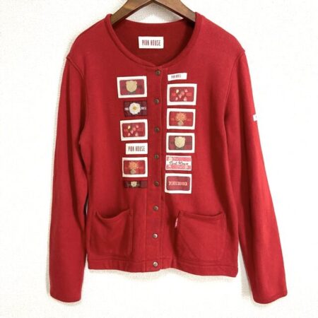 出張買取でピンクハウスのカーディガンを買取しました。顔うつりを明るくしてくれる赤色。ピンクハウスならではの様々なワッペンも見所です。1つ1つ逃さずチェックしたくなりますね。