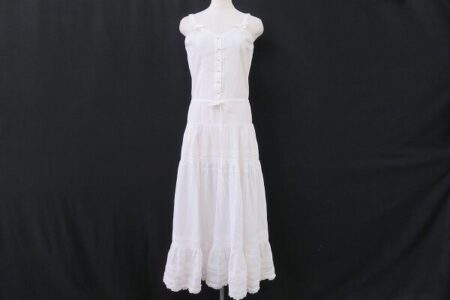 カネコイサオ ロングワンピースを宅配買取ご利用のお客様より買取しました。幅広い世代の女性から支持の高いブランド。女性の憧れを叶えてくれるような甘くてどこか落ち着いた要素のバランスが絶妙なブランドです。爽やかな白が眩しい1着。主張が抑えめなフリルやリボンも幅広く使えるポイントです。