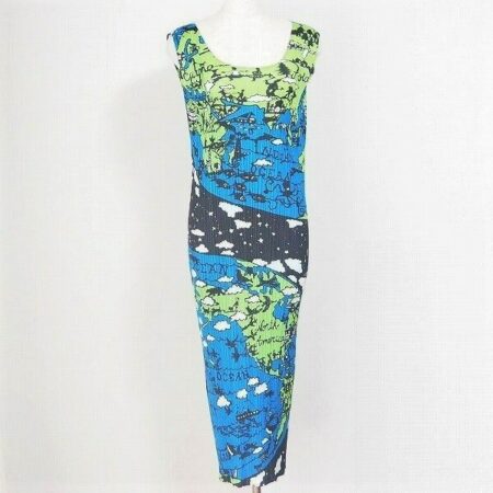 豪華な印象を与えつつ華奢さも出せる プリーツプリーズのワンピース。宅配買取ご利用のお客様より買取しました。寒色ベースで涼しさも出していただけます。ノースリーブで解放感もあり、スッキリまとめられる1点です。