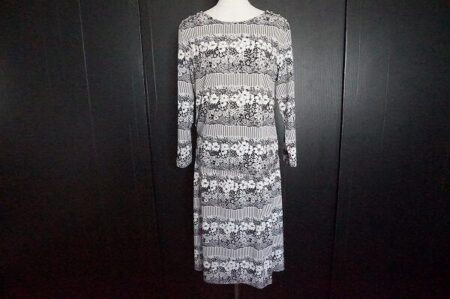イギリスの上品さやおしゃれな雰囲気が見事に出ているローラアシュレイのツーピースを買取しました。出張買取をご利用のお客様のアイテムです。タグ付きの美品でお買い得。華やか過ぎるほどのお花柄ですが、モノトーンベースなので落ち着きがあり気にせず着ていただけるかと思います。
