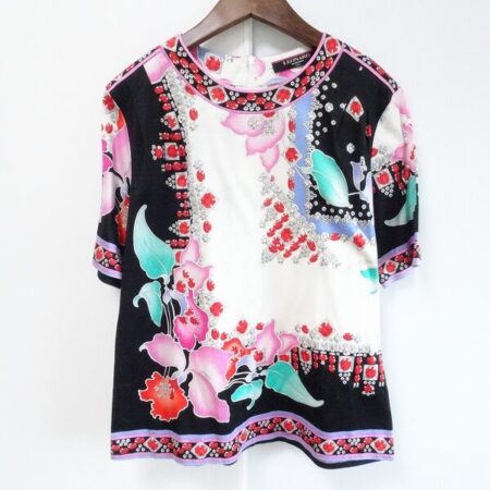 レオナールのカットソーを買取しました。出張買取です。豪華さを発揮しつつも上品にまとめてくれるジュエリー柄。顔周りを華やかに決めたい方にもおすすめのカットソーです。