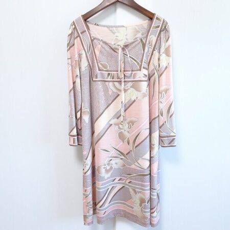 出張買取にてレオナールのワンピースを買取しました。42サイズです。グレーとピンクの相性抜群のワンピース。綺麗ながらもしっとり楽しんでいただけます。デニムジャケットなどカジュアルアイテムに合わせるのもいいですね。