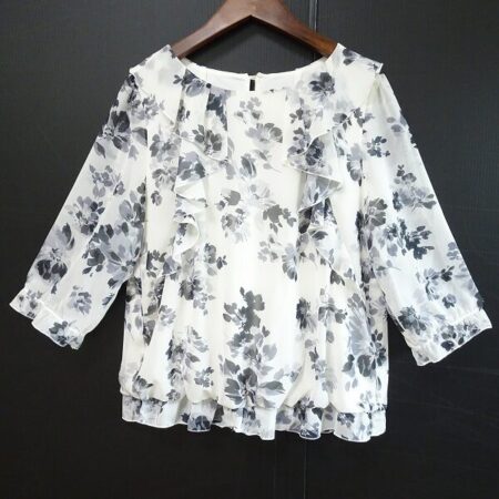出張買取でローズティアラのシャツを買取しました。白とグレーで墨絵のような大人っぽさも感じられる1点です。袖も七分なのでラフすぎず程よい綺麗さが演出できます。