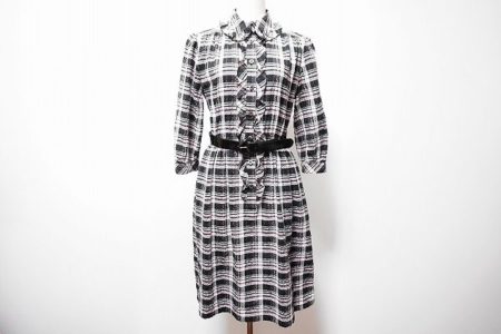 ミスアシダのワンピースを出張買取にて買取しました。上品なチェックがカジュアルではなく、どこか綺麗めな雰囲気を演出してくれます。モノトーンカラーですが、シンプル過ぎず全体的にどこか豪華な印象にしてくれる嬉しい1枚。いろいろなシーンで活躍が期待できるワンピースです。
