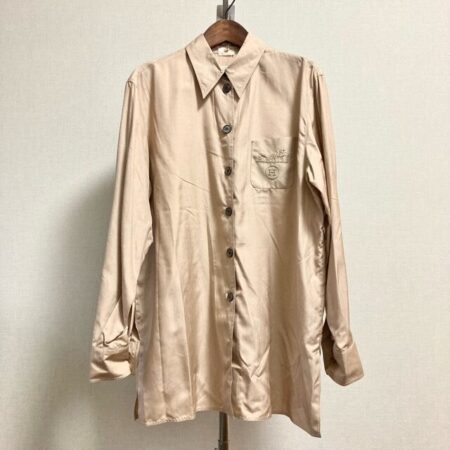 出張買取にてエルメスのブラウスを買取しました。高級ブランドエルメスならではのシルキーさがよく出たトップスです。明るいベージュなので使いやすく着やすいのが嬉しい1点。
