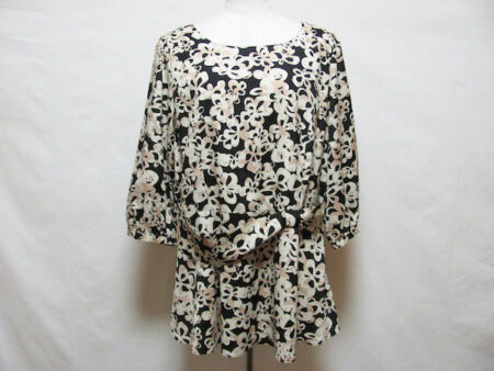豪華な花柄についつい見とれてしまうローズティアラチュニック。出張買取ご利用のお客様より買取しました。ウエスト部分もバランスよくシャープになっているのが素敵なチュニックです。カジュアルなジーンズ、タイトスカート、色が明るいボトムスなどいろんな組み合わせが楽しめるのも魅力。