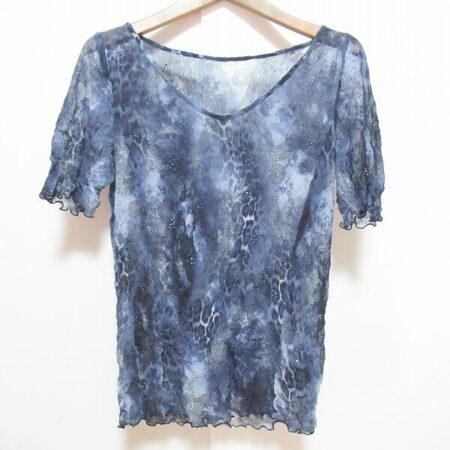 出張買取について伊太利屋のカットソーを買取しました。サイズは9号です。紺とアニマル柄がよくマッチするお洋服です。首元もざっくり開いていて涼しく着ていただけるのがいいですね。