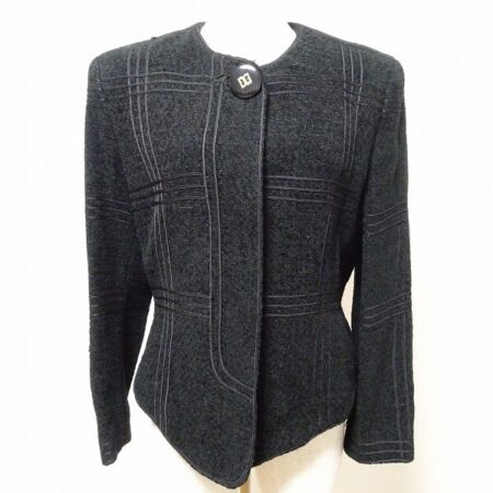 伊太利屋のジャケットを出張買取ご利用のお客様より買取しました。シンプルなツイードが珍しい1着。ノーカラー×七分袖ですのでスッキリ決めていただけるのもポイントです。