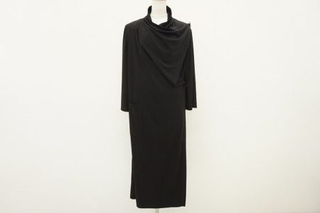 こちらは、モード感たっぷりのブラックワントーンのワンピース。