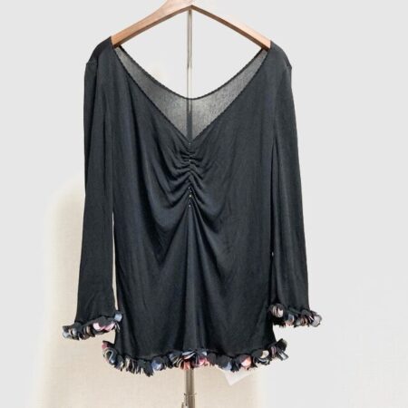 出張買取にて伊太利屋のカットソーを買取しました。裾に可愛い花モチーフがついた1点。メッシュなので黒でも軽く楽しんでいただけます。ニットやジャケットの下に着ていただき、花モチーフを覗かせてもGOOD!